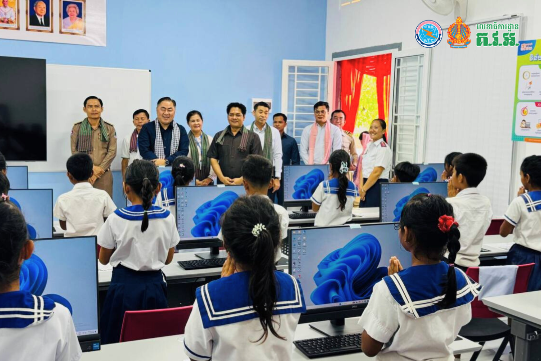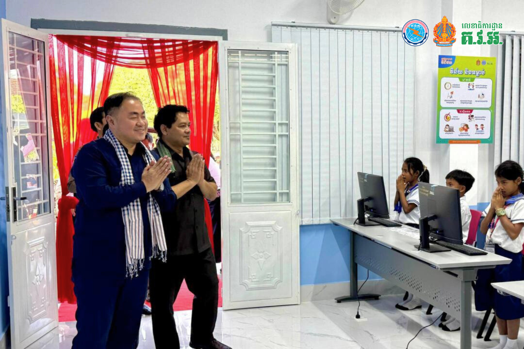 The official launch ceremony was held at Rohat Tuek Primary School in Banteay Meanchey province. The event was presided over by H.E. So Visothy, Secretary of State of the MPTC and Chairman of the Digital Skills Learning Program, and H.E. Hay Hunleng, High Representative of H.E. Senior Minister Pich Sophoan and member of the Secretariat of the National Committee for Promoting the Implementation of Key Measures in the Education Sector (CME).